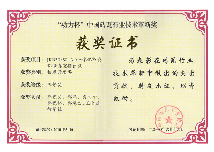 功力杯 中国砖瓦行业技术革新奖.